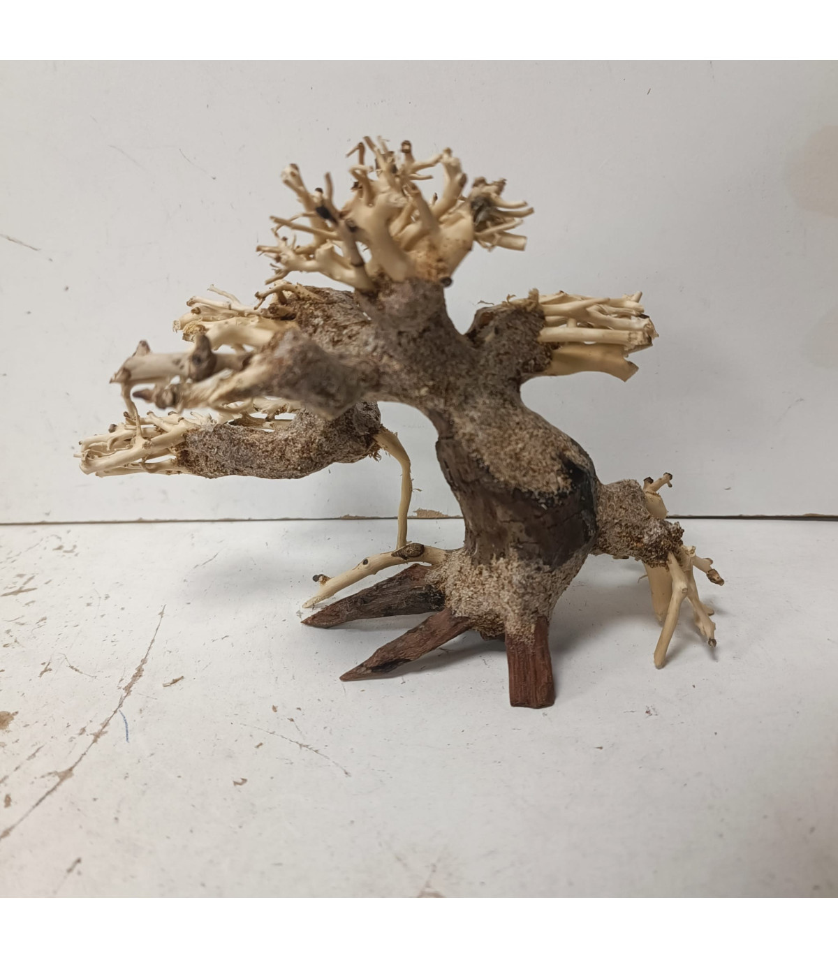 Bonsai realizado con productos naturales para acuario con las ramificaciones preparadas para colocar musgo y recrear arboles en el acuario. El bonsai corresponde con la de las imagenes. Medidas en la descripción del producto. No necesita ser tratada.