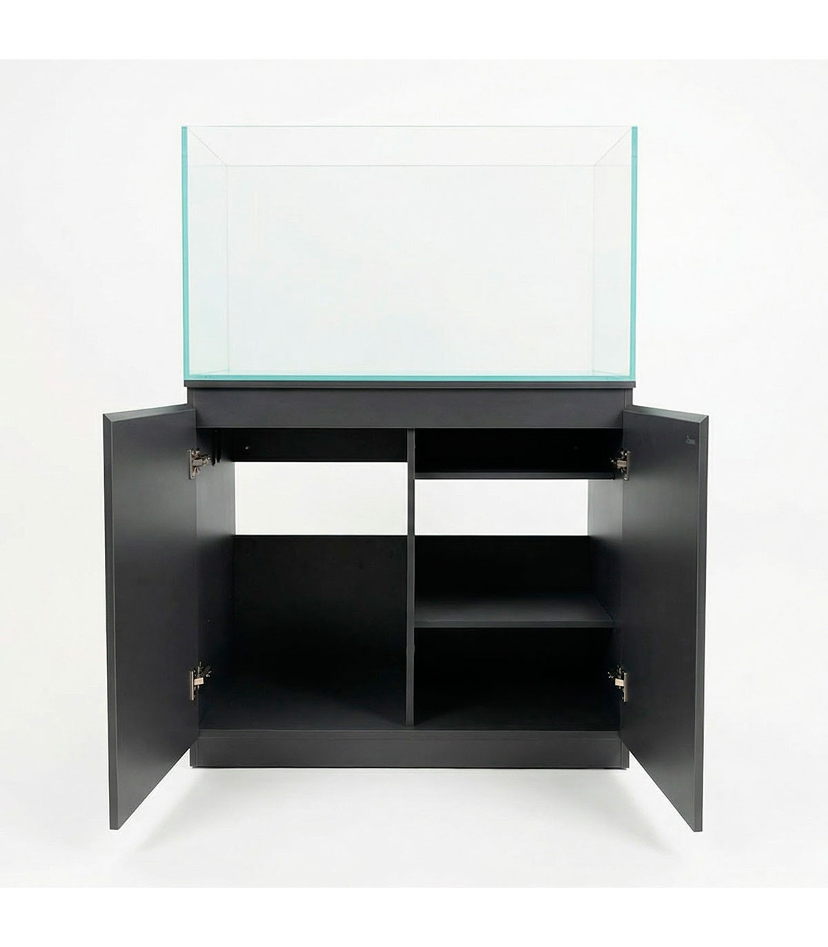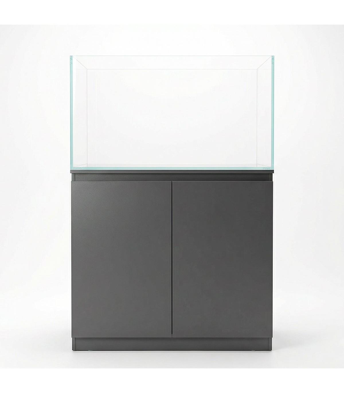 Conjunto de mueble + urna de vidrio óptico de alta transparencia, silicona transparente y gran acabado. Mueble de color antracita de alta calidad y visualmente muy elegante. Incluye alfombrilla Acuario 90x50x50cm (225 litros). Envio incluido.